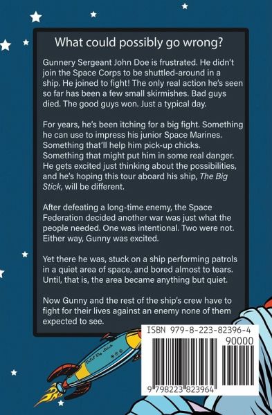 What could possibly go wrong? Gunnery Sergeant John Doe is frustrated. He didn't join the Space Corps to be shuttled-around in a ship. He joined to fight. The only real action he's seen so far have been a few small skirmishes. Bad guys died. The good guys won. Just a typical day. For years he's been itching for a big fight. Something he can use to impress his junior Space Marines. Something that'll help him pick-up chicks. Something that might put him in some real danger. He gets excited just thinking about the possibilities. He's hoping this tour aboard his ship, The Big Stick, will be different. After defeating a long-time enemy, the Space Federation decided another war was just what the people needed. One was intentional. Two were not. Either way, Gunny was excited. Yet there he was, stuck on a ship performing patrols in a quiet area of space, and bored almost to tears. Until, that is, the area became anything but quiet. Now Gunny and the rest of the ship's crew have to fight for their lives against an enemy none of them expected to see. "This action-packed romp lends an interplanetary twist to a battle-of-the-sexes romantic comedy." Virge B., Proofreader, Red Adept Editing