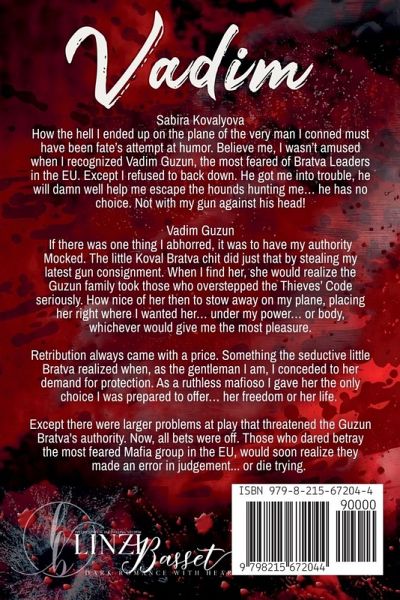 VADIM: A Dark Mafia Suspense Romance Vadim was the second born but his brother believed in equality... of power and responsibility. Vadim, his sister, Vanya, and the eldest, Arian, leaders of the Guzun Bratva, ruled Moldova as a team. Sabira Kovalyova How the hell I ended up on the plane of the very man I conned must have been fate's attempt at humor. Believe me, I wasn't amused when I recognized Vadim Guzun, the most feared of Bratva Leaders in the EU. Except I refused to back down. He got me into trouble, he will damn well help me escape the hounds hunting me... he had no choice. Not with my gun against his head! Vadim Guzun If there was one thing I abhorred, it was to have my authority mocked. The little Koval Bratva chit did just that by stealing my latest gun consignment. When I find her, she would realize the Guzun family took those who overstepped the Thieves' Code seriously. How nice of her then to stow away on my plane, placing her right where I wanted her... under my power... or body, whichever would give me the most pleasure. Retribution always came with a price. Something the seductive little Bratva realized when I conceded to her demand for protection. Of course, as a gentleman I conceded; as a ruthless mafioso I gave her the only choice I was prepared to offer... her freedom or her life. Except there were larger problems at play that threatened the Guzun Bratva's authority. Now, all bets were off. Those who dared rise against the most feared Mafia group in the EU, would soon realize they made an error in judgement... or die trying. PLEASE NOTE: Although the blurb is in first person, the book is written in third person.