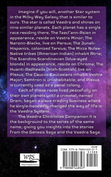 A companion book to the Vaedra Chronicles Series with insights into the planetary system, excerpts from books, and deleted scenes, and images of what the planets look like, as well as the ships and armor.