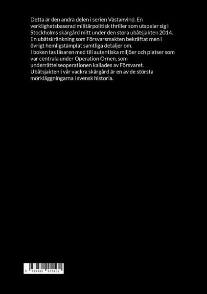 Detta är den andra delen i serien Västanvind. En verklighetsbaserad militärpolitisk thriller som utspelar sig i Stockholms skärgård mitt under den stora ubåtsjakten 2014. En ubåtskränkning som Försvarsmakten bekräftat men i övrigt hemligstämplat samtliga detaljer om. I boken tas läsaren med till autentiska miljöer och platser som var centrala under Operation Örnen, som underrättelseoperationen kallades av Försvaret. Ubåtsjakten i vår vackra skärgård är en av de största mörkläggningarna i svensk historia.