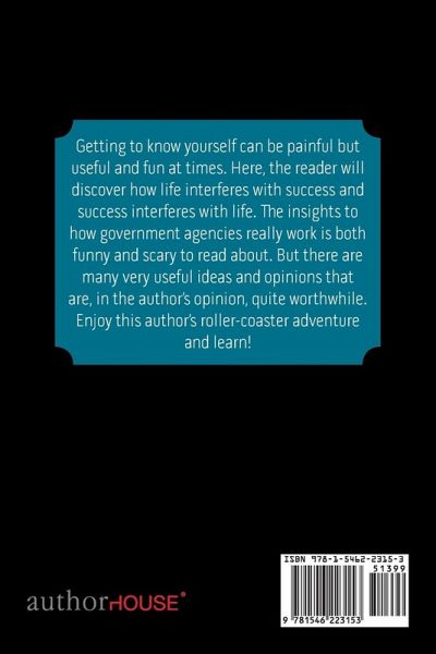 Getting to know yourself can be painful but useful and fun at times. Here, the reader will discover how life interferes with success and success interferes with life. The insights to how government agencies really work is both funny and scary to read about. But there are many very useful ideas and opinions that are, in the author?s opinion, quite worthwhile. Enjoy this author?s roller-coaster adventure and learn!