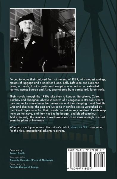 Forced to leave their beloved Paris at the end of 1929, with modest savings, masses of luggage and a need for blood, Sally Lafayette and Lucienne Leung-friends, fashion plates and vampires-set out on an extended journey across Europe and Asia, encumbered by a particularly large trunk. Their travels through the 1930s take them to London, Barcelona, Cairo, Bombay and Shanghai, always in search of a congenial metropolis where they can make a new home for themselves and their sleeping friend Natalie. Chic and charming, the pair are welcome in rarified circles untouched by the Great Depression, but their travels are not entirely carefree. Events keep them on the move, and they need to be budget- and blood-conscious. And eventually, the rumbles of world-wide war come close enough to affect even the plans of immortals. Whether or not you've read the author's debut, Vamps of '29, come along for the ride. International adventure awaits.
