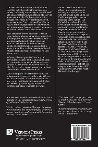 This book concerns why the writers featured sought to exile themselves from mainstream society, not least by embracing the 'natural' world and an ascetic lifestyle. With the help of generous references from the 30-plus vagabond writers featured (plus many more contributions from secondary texts), Cutler has identified what he regards as the key features of the temperament and philosophy of those who rejected mannered, conventional society for a vagabond life. Each chapter addresses a different aspect of vagabondage under such themes as: wanderlust; the compulsion not to live a settled existence; asceticism; affinity with nature; the desire to retain the innocence (and mischief) of childhood; aloofness yet compassion for the rest of human-kind; and the rejection of formal education for knowledge experienced via their own senses. Refusing to be compromised by the grand narratives of religion, politics, law, nationalism, and convention, they regarded themselves as 'citizens of the universe' rather than slaves of what they regarded as geographical and political states artificially created by humans. Cutler attempts to rescue from obscurity, the philosophy first espoused by the ancient Cynics and now practiced-outside of any organized movement-by this disparate group of thinkers and writers, by presenting arguments and conclusions that are original to this work.