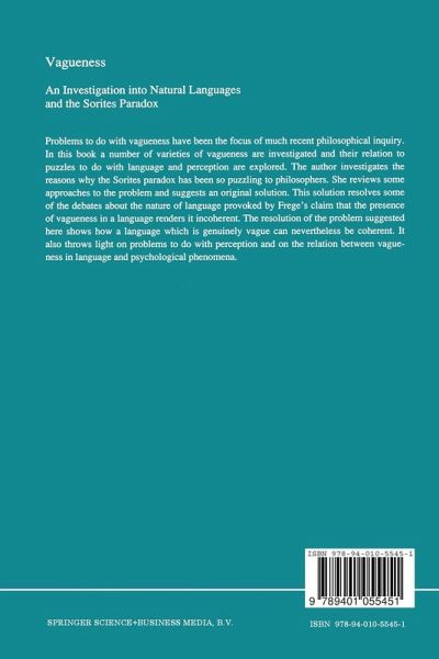 This work is in two parts. It began as a general investigation of vagueness in natural languages. The Sorites Paradox came to dominate the work however, and the second part of the book consists in an discussion ofthat puzzle and related problems. The first part contains a general discussion ofthe nature ofvagueness and its sources. I discuss various conceptions of vagueness in chapter 1 and outline some of the problems to do with the conception of vagueness as a linguistic phenomenon. The most interesting of these is the Sorites paradox, which occurs where natural languages exhibit a particular variety of borderline case vagueness. I discuss some sources of vagueness of the borderline case variety, and views of the relation between linguistic behaviour and languages which are vague in this sense. I argue in chapter 2 that these problems are not to be easily avoided by statistical averaging techniques or attempts to provide a mathematical model of consensus in linguistic usage. I also consider in chapter 3 various approaches to the problem of providing an adequate logic and semantics for vague natural languages, and argue against two currently popular approaches to vagueness. These are supervaluation accounts which attempt to provide precise semantic models for vague languages based on the notion of specification spaces, and attempts to replace the laws ofclassical logic with systems offuzzy logic.
