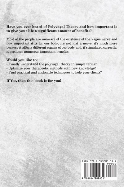 Have you ever heard of Polyvagal Theory and how important is to give your life a significant amount of benefits? Most of the people are unaware of the existence of the Vagus nerve and how important it is for our body: it's not just a nerve, it's much more because it affects different organs of our body and, if stimulated correctly, it produces numerous important benefits. Would you like to: - Finally understand the polyvagal theory in simple terms? - Optimize your therapeutic methods with new knowledge? - Find practical and applicable techniques to help your clients? If Yes, then this book is for you! With this book, you will learn how the polyvagal theory leverages neurobiology and psychophysiological signs. You will enhance your ability to treat trauma, anxiety, addiction, depression, and a host of other mental health issues. You will get practical guidance on the therapeutic influence of facial expression, eye contact, and voice modulation. This theory will help you strengthen any therapeutic strategy and achieve lasting clinical results. You're probably asking yourself: - What is the vagus nerve? - What is the polyvagal theory? - What makes it crucial to your health? - How it affects your mental health? - How can you improve its function? Whether you're a therapist or a person looking to find a comprehensive path to healing, this book will give you a comprehensive and practical overview of the polyvagal theory and its benefits! The vagus nerve is the most important nerve you probably didn't know you had. It is a long meandering bundle of motor and sensory fibers that links the brain stem to the heart, lungs, and gut. It also branches out to touch and interact with the liver, spleen, gallbladder, ureter, female fertility organs, neck, ears, tongue, and kidneys. Dr Justin Hoffman, a Santa Rosa, California, licensed naturopathic medical physician, says: "Without the vagus nerve, key functions that keep us alive would not be maintained." Nationally recognized sports nutritionist, strength, and conditioning coach Brandon Mentore elaborates: "The vagus nerve is extremely critical to your overall health and is intimately tied in with multiple organs and systems of the body." Vagus nerve dysfunction can result in a whole host of problems including obesity, bradycardia (abnormally slow heartbeat), difficulty swallowing, gastrointestinal diseases, fainting, mood disorders, B12 deficiency, chronic inflammation, impaired cough, and seizures. Meanwhile, the vagus nerve stimulation has been shown to improve conditions such as: - Anxiety disorder - Heart disease - Tinnitus - Obesity - Alcohol addiction - Migraines - Alzheimer's - Leaky gut - Bad blood circulation - Mood disorder - Cancer Your social nervous system increases your ability to respond effectively when you feel keyed up with anxiety or shut-down with depression. Your vagus nerve plays a key role in your overall wellbeing and performance. Whether you are feeling anxiety or depression, you can use tools to engage your social nervous system to re-establish higher order nervous system functions. Healing the nervous system can take time and requires patience. Put the polyvagal theory into action in your life to increase your sense of freedom in body and mind This book provides all the tools you need to understand and heal your vagus nerve.