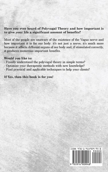 Have you ever heard of Polyvagal Theory and how important is to give your life a significant amount of benefits? Most of the people are unaware of the existence of the Vagus nerve and how important it is for our body: it's not just a nerve, it's much more because it affects different organs of our body and, if stimulated correctly, it produces numerous important benefits. Would you like to: - Finally understand the polyvagal theory in simple terms? - Optimize your therapeutic methods with new knowledge? - Find practical and applicable techniques to help your clients? If Yes, then this book is for you! With this book, you will learn how the polyvagal theory leverages neurobiology and psychophysiological signs. You will enhance your ability to treat trauma, anxiety, addiction, depression, and a host of other mental health issues. You will get practical guidance on the therapeutic influence of facial expression, eye contact, and voice modulation. This theory will help you strengthen any therapeutic strategy and achieve lasting clinical results. You're probably asking yourself: - What is the vagus nerve? - What is the polyvagal theory? - What makes it crucial to your health? - How it affects your mental health? - How can you improve its function? Whether you're a therapist or a person looking to find a comprehensive path to healing, this book will give you a comprehensive and practical overview of the polyvagal theory and its benefits! The vagus nerve is the most important nerve you probably didn't know you had. It is a long meandering bundle of motor and sensory fibers that links the brain stem to the heart, lungs, and gut. It also branches out to touch and interact with the liver, spleen, gallbladder, ureter, female fertility organs, neck, ears, tongue, and kidneys. Dr Justin Hoffman, a Santa Rosa, California, licensed naturopathic medical physician, says: "Without the vagus nerve, key functions that keep us alive would not be maintained." Nationally recognized sports nutritionist, strength, and conditioning coach Brandon Mentore elaborates: "The vagus nerve is extremely critical to your overall health and is intimately tied in with multiple organs and systems of the body." Vagus nerve dysfunction can result in a whole host of problems including obesity, bradycardia (abnormally slow heartbeat), difficulty swallowing, gastrointestinal diseases, fainting, mood disorders, B12 deficiency, chronic inflammation, impaired cough, and seizures. Meanwhile, the vagus nerve stimulation has been shown to improve conditions such as: - Anxiety disorder - Heart disease - Tinnitus - Obesity - Alcohol addiction - Migraines - Alzheimer's - Leaky gut - Bad blood circulation - Mood disorder - Cancer Your social nervous system increases your ability to respond effectively when you feel keyed up with anxiety or shut-down with depression. Your vagus nerve plays a key role in your overall wellbeing and performance. Whether you are feeling anxiety or depression, you can use tools to engage your social nervous system to re-establish higher order nervous system functions. Healing the nervous system can take time and requires patience. Put the polyvagal theory into action in your life to increase your sense of freedom in body and mind This book provides all the tools you need to understand and heal your vagus nerve.