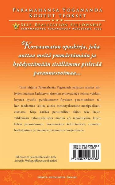 Paramahansa Yogananda, hengellisen kirjallisuuden klassikon Joogin omaelämäkerta kirjoittaja, otti ensimmäisenä länsimaissa käyttöön affirmaatiot eli vahvistavat lauseet jo yli 70 vuotta sitten. Nykyisin affirmaatiot ovat laajassa käytössä niin sairaaloissa, kuntoutusohjelmissa, urheiluvalmennuksessa kuin yritysmaailmassakin. Yogananda selvittää, miten ja miksi tämä perinteinen tieteellinen menetelmä toimii. Kirja sisältää perusteelliset ohjeet vahvistavien lauseiden käyttöön, selvityksen terveyttämme säätelevistä metafyysisistä lainalaisuuksista sekä yli 60 vahvistuslausetta eri tarkoituksiin, mm. fyysisen terveyden saavuttamiseen, luottamuksen kehittämiseen ja huonoista tottumuksista vapautumiseen.