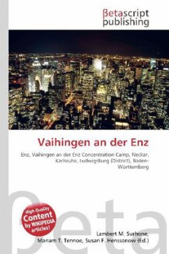 Please note that the content of this book primarily consists of articles available from Wikipedia or other free sources online. Vaihingen an der Enz is located on the western periphery of the middle Neckar region, between Stuttgart and Karlsruhe, in southern Germany. Vaihingen is situated on the river Enz, and has a population of around 30,000. The city is within the administrative region of Stuttgart, and in the district of Ludwigsburg, state of Baden-Württemberg. It is 25 km northwest of Stuttgart, and 15 km west of Ludwigsburg.