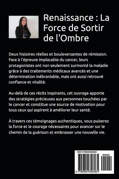Vaincre et Guérir le Cancer: Histoires vraies et inspirantes de rétablissement Deux parcours authentiques où la science et la foi s'unissent pour triompher de la maladie ! Ce livre relate avec précision le combat exceptionnel de deux personnes ayant surmonté plusieurs formes de cancer. Grâce à des traitements médicaux avancés alliés à une détermination inébranlable, elles ont réussi à inverser le cours de la maladie et à retrouver la santé. Leurs témoignages, emplis de courage, de sagesse et d'espoir, apportent une lumière précieuse à tous ceux qui font face au cancer.