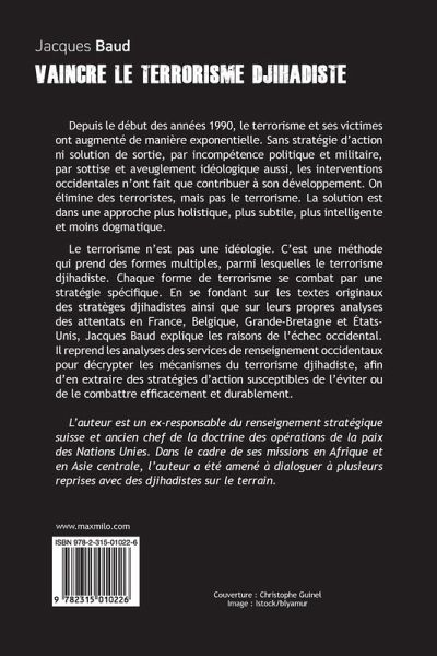 Depuis le début des années 1990, le terrorisme et ses victimes ont augmenté de manière exponentielle. Sans stratégie d'action ni solution de sortie, par incompétence politique et militaire, par sottise et aveuglement idéologique aussi, les interventions occidentales n'ont fait que contribuer à son développement. On élimine des terroristes, mais pas le terrorisme. La solution est dans une approche plus holistique, plus subtile, plus intelligente et moins dogmatique.Le terrorisme n'est pas une idéologie. C'est une méthode qui prend des formes multiples, parmi lesquelles le terrorisme djihadiste. Chaque forme de terrorisme se combat par une stratégie spécifique. En se fondant sur les textes originaux des stratèges djihadistes ainsi que sur leurs propres analyses des attentats en France, Belgique, Grande-Bretagne et États-Unis, Jacques Baud explique les raisons de l'échec occidental. Il reprend les analyses des services de renseignement occidentaux pour décrypter les mécanismes du terrorisme djihadiste, afin d'en extraire des stratégies d'action susceptibles de l'éviter ou de le combattre efficacement et durablement.