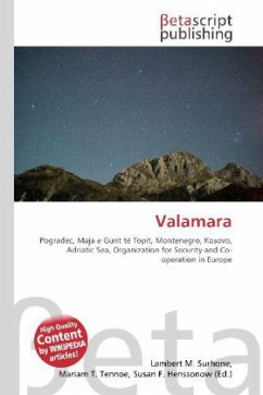 Please note that the content of this book primarily consists of articles available from Wikipedia or other free sources online. Valamara is large mountain found in eastern Albania. It has a number of peaks, the highest of which is Maja e Valamarës, which reaches a height of 2,373 m (7,785 ft). Near the main ridge of Valamara there are very few trees whereas on Valamaras lower slopes there are abundant amounts of forests. On the south of Vlamara are found may large mountain lakes which are a great tourist attraction.