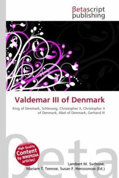High Quality Content by WIKIPEDIA articles! Valdemar III of Denmark (1314 1364) was a king of Denmark from 1326 to 1329 briefly when underage, as well as in 1325 26 and from 1330 to 1364 Duke of Schleswig as Valdemar V. He was a rival king set up against the unsuccessful Christopher II and was widely opposed by his many subjects. His term was ended when he abdicated. Nvaldemar's father was Duke Eric II of Schleswig and his mother was Adelheid of Holstein, daughter of Henry I of Rendsborg. When his distant kinsman and the head of the rival royal branch Christopher II of Denmark was exiled from his kingdom, the Holsteiner and Danish high nobles got to choose a new king. Their choice fell to 11-year old Duke Valdemar V of Schleswig, who was the head of the branch descended from king Abel of Denmark. Due to his young age, his maternal uncle, the mighty Count Gerhard of Rendsborg (Gerhard III of Holstein) who also was the biggest pawnholder of mortgaged Denmark, was appointed as the Regent and guardian ("grev Gert" or "Den kullede Greve").