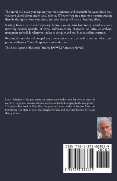 This novel will make you explore your most intimate and shameful fantasies, those that you have closed down under social taboos. Whether you are a man or a woman putting them in the light of your conscience and your desires will have a liberating effect. Starting from a naive contemporary dating a young man has stormy sexual relations involving twisted episodes of erotic sadomasochistic character. An Afro-Colombian immigrant girl will do whatever it takes to conquer and pull him out of his situation. Reading this novella will compel you to reexamine your true inclinations in hidden and profound themes. You will experience an awakening. This book is part of the series "Steamy BWWM Romance Novels."