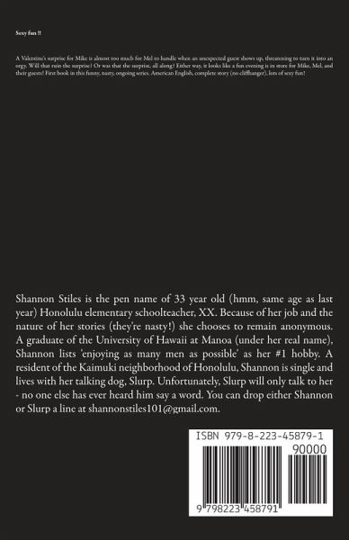 Sexy fun !! A Valentine's surprise for Mike is almost too much for Mel to handle when an unexpected guest shows up, threatening to turn it into an orgy. Will that ruin the surprise? Or was that the surprise, all along? Either way, it looks like a fun evening is in store for Mike, Mel, and their guests! First book in this funny, nasty, ongoing series. American English, complete story (no cliffhanger), lots of sexy fun!