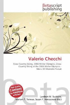 Please note that the content of this book primarily consists of articles available from Wikipedia or other free sources online. Valerio Checchi (born April 3, 1980) is an Italian cross country skier who has competed since 1999. He has two World Cup victories with one in 2006 and another in 2008. At the 2006 Winter Olympics in Turin, Checchi finished 18th in the 15 km + 15 km double pursuit event and 36th in the 15 km event. Checchi''s best finish at the FIS Nordic World Ski Championships was fourth in the 4 x 10 km relay at Liberec in 2009. Checchi finished ninth in the 4 x 10 km relay event at the 2010 Winter Olympics in Vancouver.