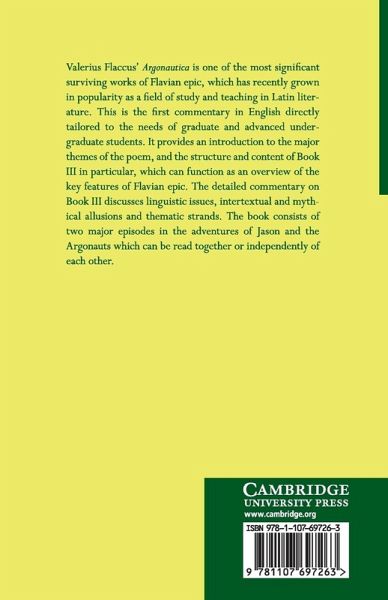 Valerius Flaccus' Argonautica is one of the most significant surviving works of Flavian epic, which has recently become much more popular as a field of study and teaching in Latin literature. This is the first commentary in English directly tailored to the needs of graduate and advanced undergraduate students. It provides an introduction to the major themes of the poem and the structure and content of Book III in particular which can function as an overview of the key features of Flavian epic. The detailed commentary on Book III discusses linguistic issues, intertextual and mythical allusions and thematic strands. The book consists of two major episodes in the adventures of Jason and the Argonauts which can be read together or independently of each other.