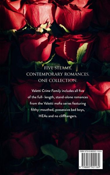 Five steamy, contemporary romance books. One binge worthy collection. Valetti Crime Family includes all five of the full-length, standalone romances from the Valetti Mafia series, featuring filthy-mouthed, possessive bad boys. Happily Ever Afters and no cliffhangers.