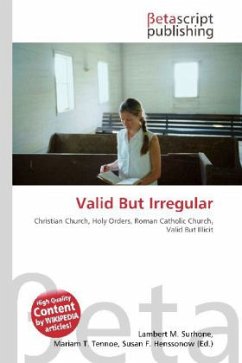 Please note that the content of this book primarily consists of articles available from Wikipedia or other free sources online. Valid but irregular is a term applied in churches which have a concept of Holy Orders (particularly the Anglican and Roman Catholic Churches) to acts carried out by someone who is able, due to their possession of the appropriate orders, to carry out the act, but does not have the necessary authority to do so. In the Roman Catholic church the term may be synonymous with ''valid but illicit''; however, the Anglican churches, being less centralised, do not usually go so far as to declare acts illicit.