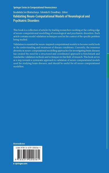 Validation is essential for neuro-inspired computational models to become useful tools in the understanding and treatment of disease conditions. Currently, the immense diversity in neuro-computational modelling approaches for investigating brain diseases has created the need for a structured and coordinated approach to benchmark and standardise validation methods and techniques in this field of research. This book serves as a step towards a systematic approach to validation of neuro-computational models used for studying brain diseases and should be useful for all neuro-computational modellers.