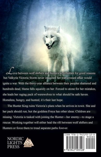A thirty-year alliance that aligned wolves and hunters has shattered. Victoria Storm leads a few surviving members of her pack in a desperate flight. As the only surviving child of their leaders, the she-wolf inherited the role of Alpha. The violent deaths of her parents and the man she loved left her devastated, and the lives of her followers depend on her decisions. Simple survival often conflicts with the demands of preserving her Norse heritage, so she must struggle to balance her duties as Freya's priestess and Odin's Valkyrie. When innocent children are abducted, she must set aside her differences and work with her worst enemy to rescue them. 136 Pages, 1st Edition. Urban Fantasy/ Norse & Viking Folklore Standalone novel.
