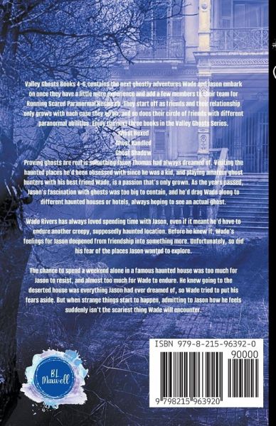 Valley Ghosts Books 4-6,contains the next ghostly adventures Wade and Jason embark on once they have a little more experience and add a few members to their team for Running Scared Paranormal Research. They start off as friends and their relationship only grows with each case they go on, and so does their circle of friends with different paranormal abilities. Enjoy the next three books in the Valley Ghosts Series. Ghost Hexed Ghost Handled Ghost Shadow Proving ghosts are real is something Jason Thomas had always dreamed of. Visiting the haunted places he'd been obsessed with since he was a kid, and playing amateur ghost hunters with his best friend Wade, is a passion that's only grown. As the years passed, Jason's fascination with ghosts was too big to contain, and he'd drag Wade along to different haunted houses or hotels, always hoping to see an actual ghost. Wade Rivers has always loved spending time with Jason, even if it meant he'd have to endure another creepy, supposedly haunted location. Before he knew it, Wade's feelings for Jason deepened from friendship into something more. Unfortunately, so did his fear of the places Jason wanted to explore. The chance to spend a weekend alone in a famous haunted house was too much for Jason to resist, and almost too much for Wade to endure. He knew going to the deserted house was everything Jason had ever dreamed of, so Wade tried to put his fears aside. But when strange things start to happen, admitting to Jason how he feels suddenly isn't the scariest thing Wade will encounter.