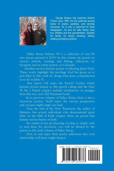 This book is a collection of poems written in 2019 and features poems on Bearing Jesus' Fruit, the Hall of Faith, the Book of Daniel, Animals, Colorado, pastoring, and several humorous ones as well.
