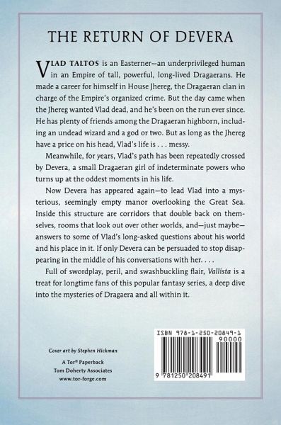 "Brust's signature wit and narrative voice keep the action flowing and entertaining." -Publishers Weekly on Vallista Full of swordplay, peril, and swashbuckling flair, Steven Brust's Vallista is a treat for longtime fans of this popular fantasy series, a deep dive into the mysteries of Dragaera and all within it. Vlad Taltos is an Easterner-an underprivileged human in an Empire of tall, powerful, long-lived Dragaerans. He made a career for himself in House Jhereg, the Dragaeran clan in charge of the Empire's organized crime. But the day came when the Jhereg wanted Vlad dead, and he's been on the run ever since. He has plenty of friends among the Dragaeran highborn, including an undead wizard and a god or two. But as long as the Jhereg have a price on his head, Vlad's life is...messy. Meanwhile, for years, Vlad's path has been repeatedly crossed by Devera, a small Dragaeran girl of indeterminate powers who turns up at the oddest moments in his life. Now Devera has appeared again-to lead Vlad into a mysterious, seemingly empty manor overlooking the Great Sea. Inside this structure are corridors that double back on themselves, rooms that look out over other worlds, and-just maybe-answers to some of Vlad's long-asked questions about his world and his place in it. If only Devera can be persuaded to stop disappearing in the middle of his conversations with her... Vlad Taltos Series 1. Jhereg 2. Yendi 3. Teckla 4. Taltos 5. Phoenix 6. Athyra 7. Orca 8. Dragon 9. Issola 10. Dzur 11. Jhegaala 12. Iorich 13. Tiassa 14. Hawk 15. Vallista
