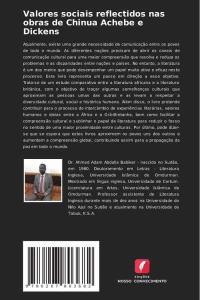 Atualmente, existe uma grande necessidade de comunicação entre os povos de todo o mundo. As diferentes nações precisam de abrir os canais de comunicação cultural para uma maior compreensão que resolva e reduza os problemas e as disparidades entre nações e países. No entanto, a literatura é um dos meios que pode desempenhar um papel muito ativo e eficaz neste processo. Este livro representa um passo em direção a esse objetivo. Trata-se de um estudo comparativo entre a literatura africana e a literatura britânica, com o objetivo de traçar algumas semelhanças culturais que aproximam as pessoas umas das outras e as levam a respeitar a diversidade cultural, social e histórica humana. Além disso, o livro pretende contribuir para o processo de intercâmbio de experiências literárias, valores humanos e ideias entre a África e a Grã-Bretanha, bem como facilitar a compreensão cultural e sublinhar o papel da literatura para reduzir o fosso no sentido de uma maior proximidade entre culturas. Por último, pode dizer-se que se espera que estes livros aproximem os povos uns dos outros e aumentem a compreensão global, contribuindo assim para a propagação da paz em todo o mundo.