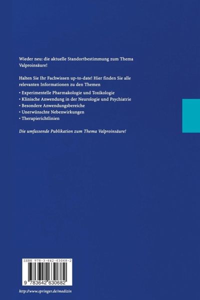 Sektion I: Experimentelle Pharmakologie und Toxikologie.- 1 Synthese und erste pharmakologische und klinische Untersuchungen von Valproinsäure.- 2 Pharmakodynamische Wirkungen und biochemische Wirkungsmechanismen von Valproinsäure.- 3 Wirkungsmechanismus von Valproinsäure: Neurophysiologische Aspekte.- 4 Membranuntersuchungen der Valproinsäure im Tiermodell.- 5 Experimentelle Studien zur Teratogenität von Valproinsäure.- Sektion II: Klinische Pharmakologie.- 6 Klinische Pharmakologie von Valproinsäure: Resorption, Metabolisierung und Elimination.- 7 Pharmakokinetik einer neu entwickelten Retardform von Valproinsäure.- 8 Pharmakologische und klinische Vorteile retardierter Valproinsäure.- 9 Medikamentöse Interaktionen von und mit Valproinsäure.- Sektion III: Klinische Neurophysiologie to.- 10 EEG-Veränderungen unter Valproinsäure.- 11 Einfluss von Valproinsäure auf evozierte Potentiale.- Sektion IV: Klinische Anwendung in der Neurologie.- 12 Stellenwert von Valproinsäure in der Therapie idiopathischer Epilepsien mit generalisierten Anfällen im Kindes-und Jugendalter.- 13 Stellenwert von Valproinsäure in der Therapie von Kindern mit West-Syndrom.- 14 Stellenwert von Valproinsäure in der Therapie des Lennox-Gastaut-Syndroms.- 15 Valproinsäuretherapie bei Epilepsien mit fokalen Anfällen im Kindesalter.- 16 Stellenwert von Valproinsäure in der Therapie generalisierter Epilepsien bei Jugendlichen und Erwachsenen.- 17 Stellenwert von Valproinsäure in der Behandlung fokaler Epilepsien bei Jugendlichen und Erwachsenen.- 18 Einmalgabetherapie mit Valproinsäure.- 19 Intravenöse Valproinsäuretherapie zur Statusbehandlung.- 20 Valproinsäure in der Kopfschmerzbehandlung.- 21 Valproinsäure bei Trigeminusneuralgie und anderen Schmerzsyndromen.- 22 DieBehandlung hyperkinetischer Bewegungsstörungen und einiger anderer neurologischer Symptome mit Valproinsäure.- 23 Verhalten und Leistungsfähigkeit unter Valproinsäure.- Sektion V: Klinische Anwendung in der Psychiatrie.- 24 Geschichtliche Entwicklung des Einsatzes von Valproinsäure in der Psychiatrie.- 25 Valproinsäure in der Behandlung des manischen Syndroms und in der Prophylaxe bipolarer affektiver Störungen.- 26 Valproinsäure zur Behandlung von "rapid cycling" und dysphorischer Manie.- 27 Intravenöse Valproinsäure-Behandlung bei bipolaren Störungen.- Sektion VI: Besondere Situationen.- 28 Valproinsäure, Schwangerschaft und Teratogenität.- Sektion VII: Unerwünschte Wirkungen.- 29 Tremor.- 30 Intoxikationen und Enzephalopathien unter Valproinsäuretherapie.- 31 Neurotoxische Spätwirkungen von Valproinsäure.- 32 Kognitive Nebenwirkungen von Valproinsäure.- 33 Gewichtszunahme und Endokrinopathie unter Valproinsäuretherapie.- 34 Unerwünschte Arzneimittelwirkungen von Valproinsäure an der Haut und den hautnahen Schleimhäuten.- 35 Nebenwirkungen von Valproinsäure an Leber, Pankreas und am blutbildenden System.- 36 Einfluss von Valproinsäure auf Fettstoffwechsel und Carnitin.- Sektion VIII: Therapierichtlinien.- 37 Stellenwert von Valproinsäure in der Behandlung von Epilepsien des Kindesalters.- 38 Stellenwert der Valproinsäure in der Behandlung von Epilepsien des Erwachsenenalters.- 39 Empfehlungen zu Blutuntersuchungen und klinischer Überwachung zur Früherkennung des Valproinsäure-assoziierten Leberversagens.