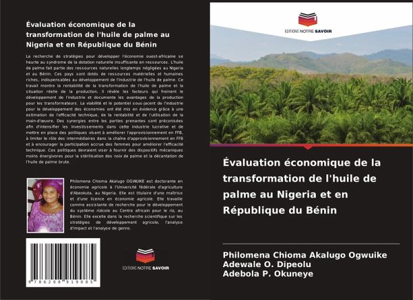 La recherche de stratégies pour développer l'économie ouest-africaine se heurte au syndrome de la dotation naturelle insuffisante en ressources. L'huile de palme fait partie des ressources naturelles longtemps négligées au Nigeria et au Bénin. Ces pays sont dotés de ressources matérielles et humaines riches, indispensables au développement de l'industrie de l'huile de palme. Ce travail montre la rentabilité de la transformation de l'huile de palme et la situation réelle de la production. Il révèle les facteurs qui freinent le développement de l'industrie et documente les avantages de la production pour les transformateurs. La viabilité et le potentiel sous-jacent de l'industrie pour le développement des économies ont été mis en évidence grâce à une estimation de l'efficacité technique, de la rentabilité et de l'utilisation de la main-d'oeuvre. Des synergies entre les parties prenantes sont préconisées afin d'intensifier les investissements dans cette industrie lucrative et de mettre en place des politiques visant à améliorer l'approvisionnement en FFB, à limiter le rôle des intermédiaires dans la chaîne d'approvisionnement en FFB et à encourager la participation accrue des femmes pour améliorer l'efficacité technique. Ces politiques devraient viser à fournir des dispositifs mécaniques moins énergivores pour la stérilisation des noix de palme et la décantation de l'huile de palme brute.