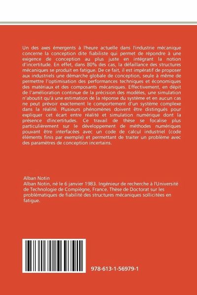 Un des axes émergents à l'heure actuelle dans l'industrie mécanique concerne la conception dite fiabiliste qui permet de répondre à une exigence de conception au plus juste en intégrant la notion d'incertitude. En effet, dans 80% des cas, la défaillance des structures mécaniques se produit en fatigue. De ce fait, il est impératif de proposer aux industriels une démarche globale de conception, seule à même de permettre l'optimisation des performances techniques et économiques des matériaux et des composants mécaniques. Effectivement, en dépit de l'amélioration continue de la précision des modèles, une simulation n'aboutit qu'à une estimation de la réponse du système et en aucun cas ne peut prévoir exactement le comportement d'un système complexe dans la réalité. Plusieurs phénomènes doivent être distingués pour expliquer cet écart entre réalité et simulation numérique dont la présence d'incertitudes. Ce travail de thèse se focalise plus particulièrement sur le développement de méthodes numériques pouvant être interfacées avec un code de calcul industriel (code éléments finis par exemple) et permettant de traiter un problème avec des paramètres de conception incertains.