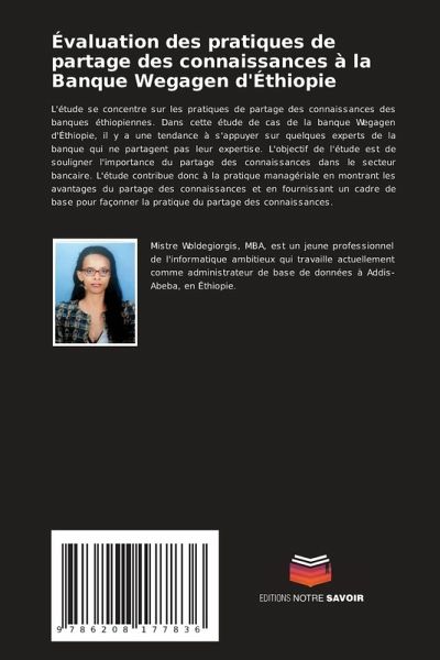L'étude se concentre sur les pratiques de partage des connaissances des banques éthiopiennes. Dans cette étude de cas de la banque Wegagen d'Éthiopie, il y a une tendance à s'appuyer sur quelques experts de la banque qui ne partagent pas leur expertise. L'objectif de l'étude est de souligner l'importance du partage des connaissances dans le secteur bancaire. L'étude contribue donc à la pratique managériale en montrant les avantages du partage des connaissances et en fournissant un cadre de base pour façonner la pratique du partage des connaissances.