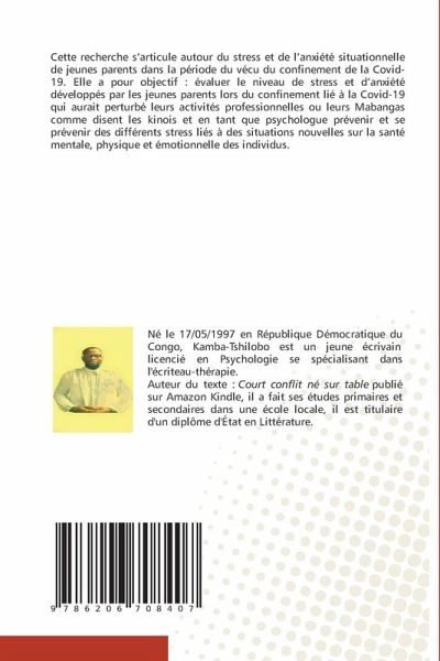 Cette recherche s'articule autour du stress et de l'anxiété situationnelle de jeunes parents dans la période du vécu du confinement de la Covid-19. Elle a pour objectif : évaluer le niveau de stress et d'anxiété développés par les jeunes parents lors du confinement lié à la Covid-19 qui aurait perturbé leurs activités professionnelles ou leurs Mabangas comme disent les kinois et en tant que psychologue prévenir et se prévenir des différents stress liés à des situations nouvelles sur la santé mentale, physique et émotionnelle des individus.