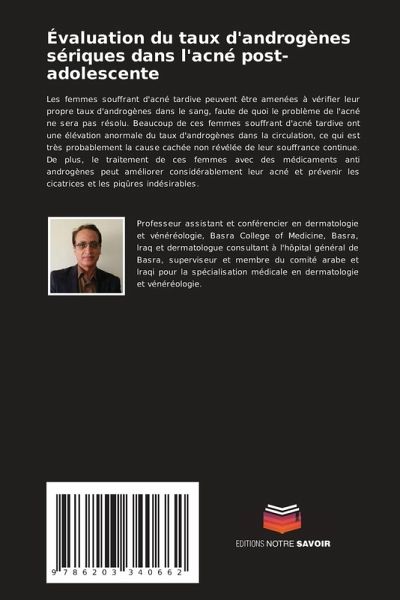 Les femmes souffrant d'acné tardive peuvent être amenées à vérifier leur propre taux d'androgènes dans le sang, faute de quoi le problème de l'acné ne sera pas résolu. Beaucoup de ces femmes souffrant d'acné tardive ont une élévation anormale du taux d'androgènes dans la circulation, ce qui est très probablement la cause cachée non révélée de leur souffrance continue. De plus, le traitement de ces femmes avec des médicaments anti androgènes peut améliorer considérablement leur acné et prévenir les cicatrices et les piqûres indésirables.