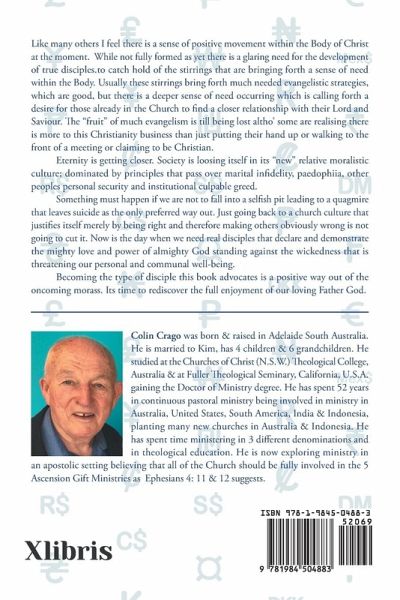 Like many others I feel there is a sense of positive movement within the body of Christ at the moment. While not fully formed as yet, there is a glaring need for the development of true disciples to catch hold of the stirrings that are bringing forth a sense of need within the body. Usually, these stirrings bring forth much needed evangelistic strategies, which are good, but there is a deeper sense of need occurring, which is calling forth a desire for those already in the Church to find a closer relationship with their Lord and Saviour. The "fruit" of much evangelism is till being lost although some are realising there is more to this Christianity business than just putting their hand up or walking to the front of a meeting or claiming to be Christian. Eternity is getting closer. Society is losing itself in its new relative moralistic culture, dominated by principles that pass over marital infidelity, paedophilia, other people's personal security and institutional culpable greed. Something must happen if we are not to fall into a selfish pit leading to a quagmire that leaves suicide as the only preferred way out. Just going back to a church culture that justifies itself merely by being right and therefore making others obviously wrong is not going to cut it. Now is the day when we need real disciples that declare and demonstrate the mighty love and power of the Almighty God standing against the wickedness that is threatening our personal and communal well-being. Becoming the type of disciple is what this book advocates, a positive way out of the oncoming morass. It's time to rediscover the full enjoyment of our loving Father God.