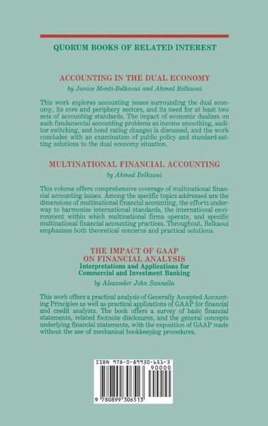 A new form of accounting statement--the value added statement--is gaining popularity in the corporate annual reports of the largest companies in the United Kingdom. This new statement can be viewed as a modified version of the income statement. Like the income statement, the value added statement reports the operating performance of a company at a given point in time, using both accrual and matching procedures. Unlike the income statement, however, it is interpreted not as a return to shareholders but as a return to the larger group of capital and labor providers. Riahi-Belkaoui shows that the value added statement can be easily derived from the income statement and is therefore easily adaptable to the needs of U.S. companies. To illustrate the usefulness of the value added statement, Riahi-Belkaoui devotes Chapter 1 to a thorough discussion of its many benefits. He then analyzes the usefulness of the value added concept in understanding the characteristics of corporate takeovers in the United States, and in Chapter 3 he discusses the relationship between the value added concept and the systematic risk of U.S. companies, concluding in Chapter 4 with a discussion of value added statements in financial analysis. His book will thus interest not only accountants, teachers, and students who follow trends in international and multi-national accounting but also those who want to prepare themselves for the development of value added techniques and procedures that might reasonably be expected in the United States.