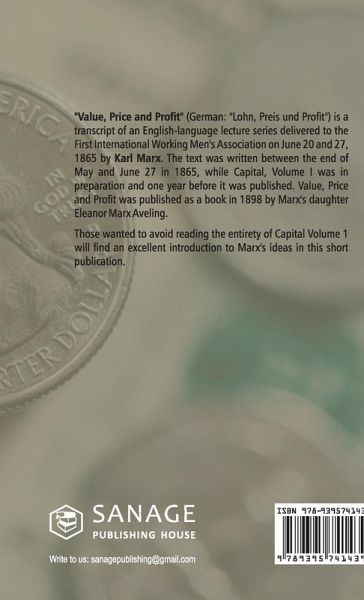 ""Value, Price and Profit"" (German: ""Lohn, Preis und Profit"") is a transcript of an English-language lecture series delivered to the First International Working Men's Association on June 20 and 27, 1865 by Karl Marx. The text was written between the end of May and June 27 in 1865, while Capital, Volume I was in preparation and one year before it was published. Value, Price and Profit was published as a book in 1898 by Marx's daughter Eleanor Marx Aveling. Those wanted to avoid reading the entirety of Capital Volume 1 will find an excellent introduction to Marx's ideas in this short publication.…mehr