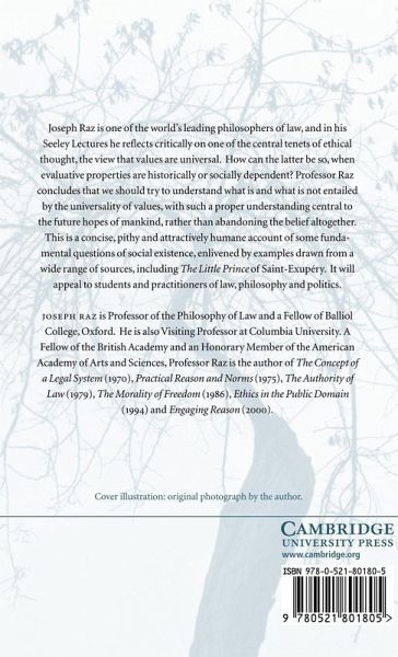 The book is a contribution to the study of values, as they affect both our personal and our public life. It defends the view that values are necessarily universal, on the ground that that is a condition of their intelligibility. It does, however, reject most common conceptions of universality, like those embodied in the writings on human rights. It aims to reconcile the universality of value with (a) the social dependence of value and (b) the centrality to our life of deep attachments to people and countries alike. Building from there, the book explores personal love, the value of life, and the fundamental duty of respect for people.