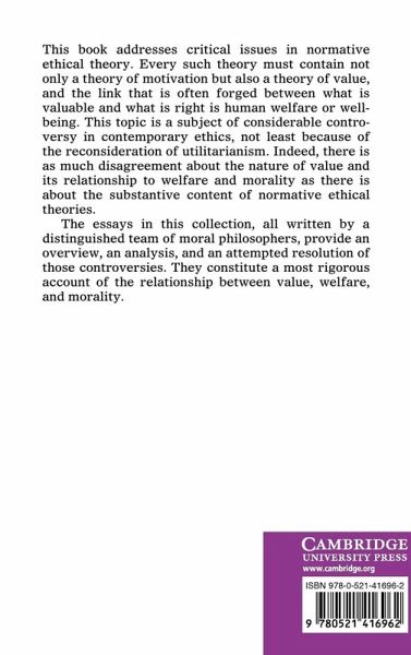 This book addresses critical issues in normative ethical theory. Every such theory must contain not only a theory of motivation but also a theory of value, and the link that is often forged between what is valuable and what would be right is human welfare or well-being. This topic is a subject of considerable controversy in contemporary ethics, not least because of the current reconsideration of utilitarianism. Indeed, there is as much disagreement about the nature of value and its relationship to welfare and morality, as there is about the substantive content of normative ethical theories. The essays in this collection, all written by a distinguished team of moral philosophers, provide an overview, analysis and an attempted resolution of those controversies. They constitute a rigorous account of the relationships among value, welfare and morality.