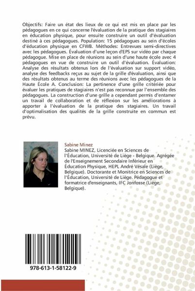 Objectifs: Faire un état des lieux de ce qui est mis en place par les pédagogues en ce qui concerne l'évaluation de la pratique des stagiaires en éducation physique, pour ensuite construire un outil d'évaluation destiné à ces pédagogues. Population: 15 pédagogues au sein d'écoles d'éducation physique en CFWB. Méthodes: Entrevues semi-directives avec les pédagogues. Évaluation d'une leçon d'EPS sur vidéo par chaque pédagogue. Mise en place de réunions au sein d'une haute école avec 4 pédagogues en vue de construire un outil d'évaluation. Évaluation: Analyse des résultats obtenus lors de l'évaluation sur support vidéo, analyse des feedbacks reçus au sujet de la grille d'évaluation, ainsi que des résultats obtenus au terme des réunions avec les pédagogues de la Haute École A. Conclusion: La pertinence d'une grille critériée pour évaluer les pratiques de stagiaires n'est pas reconnue par l'ensemble des pédagogues. La construction d'une grille a cependant permis d'entamer un travail de collaboration et de réflexion sur les améliorations à apporter à l'évaluation de la pratique des stagiaires. Un travail d'optimalisation des qualités de la grille construite en commun est prévu.
