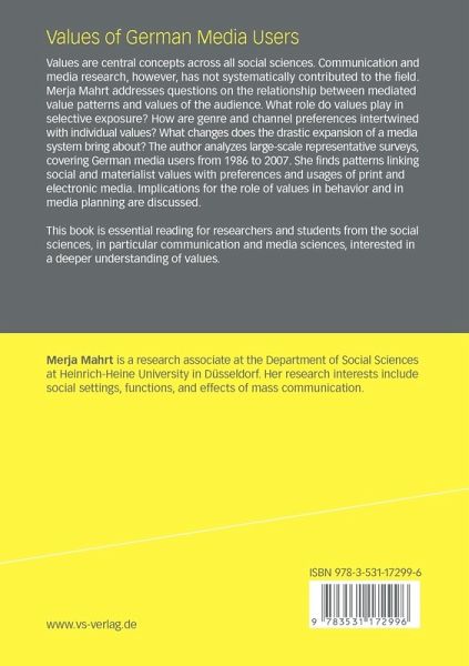 Values of German media users, 1986-2007 Values have been discussed in connection to the changes brought to the German TV landscape since the introduction of the dual system in 1984. Yet, on such occurrences arguments have rarely, if at all, been based on reliable information about differences in televised values. Nor have values of the audience of channels or genres been considered. This study offers a starting point for such an endeavor, focusing on the role values play for people's media choices. In a theoretical overview, values are situated in a framework of overlapping spheres that influence people in the adoption of values. Social learning is the main mechanism behind this process of socialization. Values define what is desirable or not and how one should behave in a given situation according to the rules of one's society. As stable basic traits close to an individual's personality, values play a part in the building of motives that finally result in behavior. With regard to media, a well-established gratification of media use is the reinforcement of one's own values and worldviews. Based on the finding that mediated value patterns differ across outlets and types of content, I assume that different values should lead people do prefer different media over others.