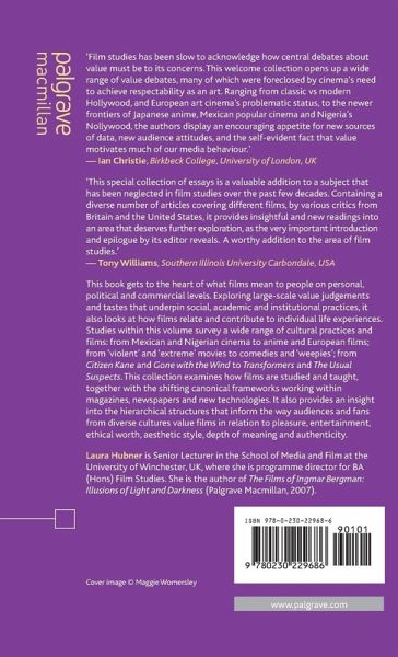 'Film studies has been slow to acknowledge how central debates about value must be to its concerns. This welcome collection opens up a wide range of value debates, many of which were foreclosed by cinema's need to achieve respectability as an art. Ranging from classic vs modern Hollywood, and European art cinema's problematic status, to the newer frontiers of Japanese anime, Mexican popular cinema and Nigeria's Nollywood, the authors displayan encouraging appetite for new sources of data, new audience attitudes, and the self-evident fact that value motivates much of our media behaviour.'