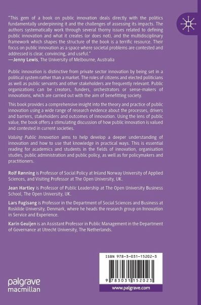 Valuing Public Innovation aims to help develop a deeper understanding of innovation and how to use that knowledge in practical ways. This is essential reading for academics and students in the fields of innovation, organisation studies, public administration and public policy, as well as for policymakers and practitioners.