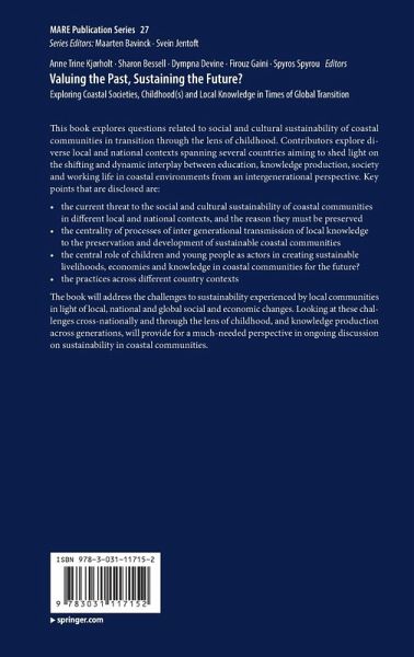 Chapter 1. Exploring Coastal Societies and Knowledge in Transition Across Generations (Kjørholt et al.).- Chapter 2. Coastal Communities Past, Present and Future? The Value of Social and Cultural Sustainability (Bessell and Kjørholt).- Chapter 3 Growing up in a Norwegian Coastal Town in the 19th Century. Work and Intergenerational Relations (Ellen Schrumpf).- Chapter 4 'I'm Treading Water Here for My Generation:' Gendered and Generational Perspectives on Informal Knowledge Transmissions in Irish Coastal Communities (Crummy and Devine).- Chapter 5 Local Knowledge and Change in a Small Fishing Community in Cyprus: Implications for Social and Cultural Sustainability (Theodorou).- Chapter 6 The shifting landscape of childhood and literacies of the sea in Mid-Norway: Sustaining the future by valuing the past? (Kjørholt).- Chapter 7 Learning from the coast.Youth, family, and local knowledge in the Faroe Islands (Firouz Gaini).- Chapter 8 Sustainability, Knowledge and Social Identity: Commonalities, Conflicts and Complexities in Coastal Communities in Tasmania, Australia (Sharon Bessell).- Chapter 9" I shall be a fisherman". Learning from the past, imagining the future. Observations from a viable community in North Norway (Harald Beyer Broch).- Chapter 10 The sea lost and found. Changes and interdependencies in a coastal community in Denmark (Gullov and Gullov).- Chapter 11 Blue Education. Exploring Case studies of place-based and intergenerational learning on Norwegian Islands (Johansson et al). Chapter 12. Becoming Coastal in a Minor Key. Concluding Chapter (Stuart Aitken).