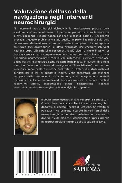 Gli interventi neurochirurgici richiedono la localizzazione precisa delle strutture anatomiche attraverso il percorso più sicuro e solitamente più breve, causando il minor danno possibile ai tessuti normali. Nei decenni precedenti questo problema è stato gestito in parte basandosi solo sulla conoscenza dell'anatomia e su vari metodi complicati. La navigazione chirurgica (neuronavigazione) è stata sviluppata per eseguire interventi neurochirurgici più efficaci e convenienti e più sicuri e meno invasivi. Le biopsie cerebrali e la compressione percutanea con palloncino sono due operazioni neurochirurgiche comuni che richiedono un'elevata precisione, anche perché le procedure standard sono impegnative. In questo libro viene descritto l'uso del sistema di navigazione "StealthStation" per le due procedure sopra citate e vengono analizzati i risultati di due studi pubblicati condotti per la tesi di dottorato. Inoltre, viene presentata una rassegna completa della stereotassi, della tecnologia di navigazione - metodi, dispositivi miniframe, procedure di biopsia cerebrale; e ancora, punti di riferimento storici, presentazione clinica, fisiopatologia, diagnosi, trattamento medico e chirurgico della nevralgia del trigemino.