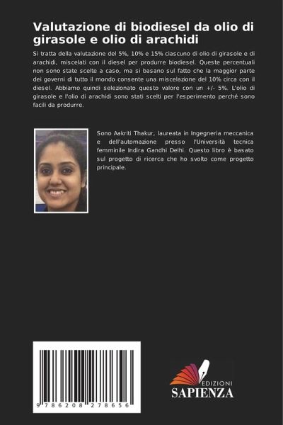 Si tratta della valutazione del 5%, 10% e 15% ciascuno di olio di girasole e di arachidi, miscelati con il diesel per produrre biodiesel. Queste percentuali non sono state scelte a caso, ma si basano sul fatto che la maggior parte dei governi di tutto il mondo consente una miscelazione del 10% circa con il diesel. Abbiamo quindi selezionato questo valore con un +/- 5%. L'olio di girasole e l'olio di arachidi sono stati scelti per l'esperimento perché sono facili da produrre.