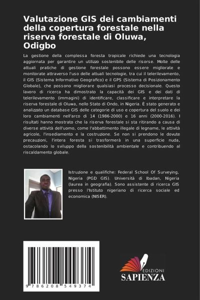 La gestione della complessa foresta tropicale richiede una tecnologia aggiornata per garantire un utilizzo sostenibile delle risorse. Molte delle attuali pratiche di gestione forestale possono essere migliorate e monitorate attraverso l'uso delle attuali tecnologie, tra cui il telerilevamento, il GIS (Sistema Informativo Geografico) e il GPS (Sistema di Posizionamento Globale), che possono migliorare qualsiasi processo decisionale. Questo lavoro di ricerca ha dimostrato la capacità dei GIS e dei dati di telerilevamento (immagini) di identificare, classificare e interpretare la riserva forestale di Oluwa, nello Stato di Ondo, in Nigeria. È stato generato e analizzato un database GIS delle categorie di uso e copertura del suolo e dei loro cambiamenti nell'arco di 14 (1986-2000) e 16 anni (2000-2016). I risultati hanno mostrato che la riserva forestale si sta ritirando a causa di diverse attività dell'uomo, come l'abbattimento illegale di legname, le attività agricole, l'insediamento e la costruzione. Se non si prendono le dovute precauzioni, l'intera foresta si trasformerà in una superficie nuda, ostacolando lo sviluppo della sostenibilità ambientale e contribuendo al riscaldamento globale.