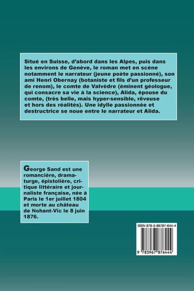 Situé en Suisse, d'abord dans les Alpes, puis dans les environs de Genève, le roman met en scène notamment le narrateur (jeune poète passionné), son ami Henri Obernay (botaniste et fils d'un professeur de renom), le comte de Valvèdre (éminent géologue, qui consacre sa vie à la science), Alida, épouse du comte, (très belle, mais hyper-sensible, rêveuse et hors des réalités). Une idylle passionnée et destructrice se noue entre le narrateur et Alida.