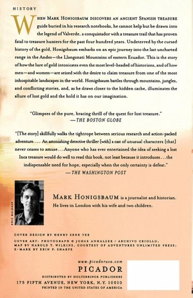When Mark Honigsbaum discovers an ancient Spanish treasure guide buried in his research notebooks, he cannot help but be drawn into the legend of Valverde, a conquistador with a treasure trail that has proven fatal for the past 400 years. Undeterred by the cursed history of the gold, Honigsbaum embarks on an epic journey into the last uncharted range in the Andes--the Llanganati Mountains of eastern Ecuador. Valverde's Gold is the story of how the lure of gold intoxicates even the most level-headed of historians, and of how men--and women--are seized with the desire to claim treasure from one of the most inhospitable landscapes in the world. Honigsbaum battles through mountains, jungles, and conflicting stories, and, as he draws closer to the hidden cache, illuminates the allure of lost gold and the hold it has on our imagination.