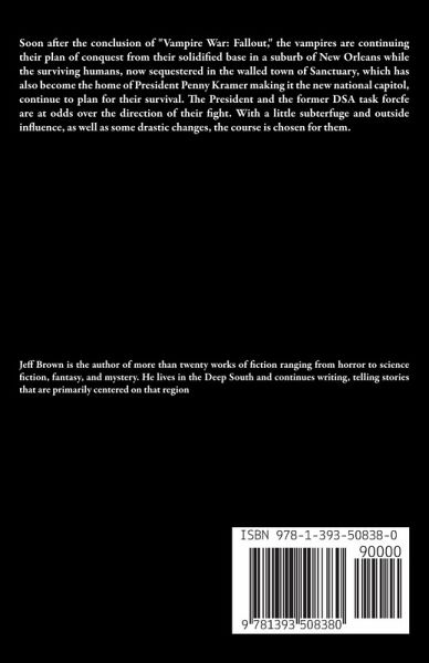 Soon after the conclusion of "Vampire War: Fallout," the vampires are continuing their plan of conquest from their solidified base in a suburb of New Orleans while the surviving humans, now sequestered in the walled town of Sanctuary, which has also become the home of President Penny Kramer making it the new national capitol, continue to plan for their survival. The President and the former DSA task forcfe are at odds over the direction of their fight. With a little subterfuge and outside influence, as well as some drastic changes, the course is chosen for them.